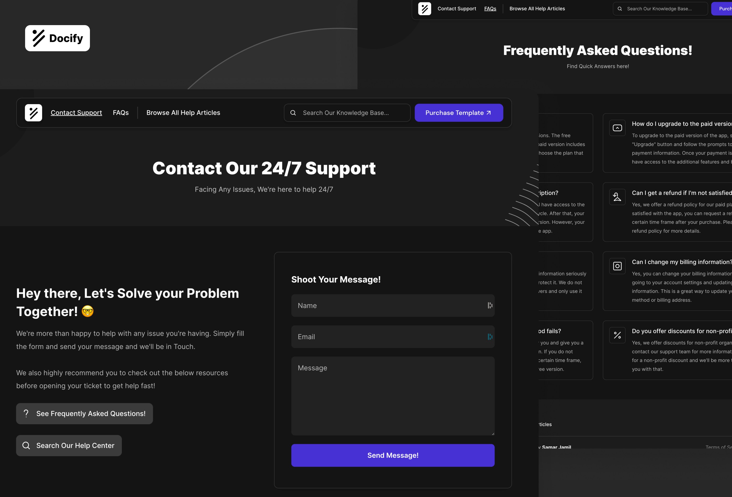 Docify Template's minimalist design ensures a clean and professional look for the website while Streamlining the task of creating a world-class Helpdesk system right inside Framer, allowing you to focus on delivering quality content to your customers.